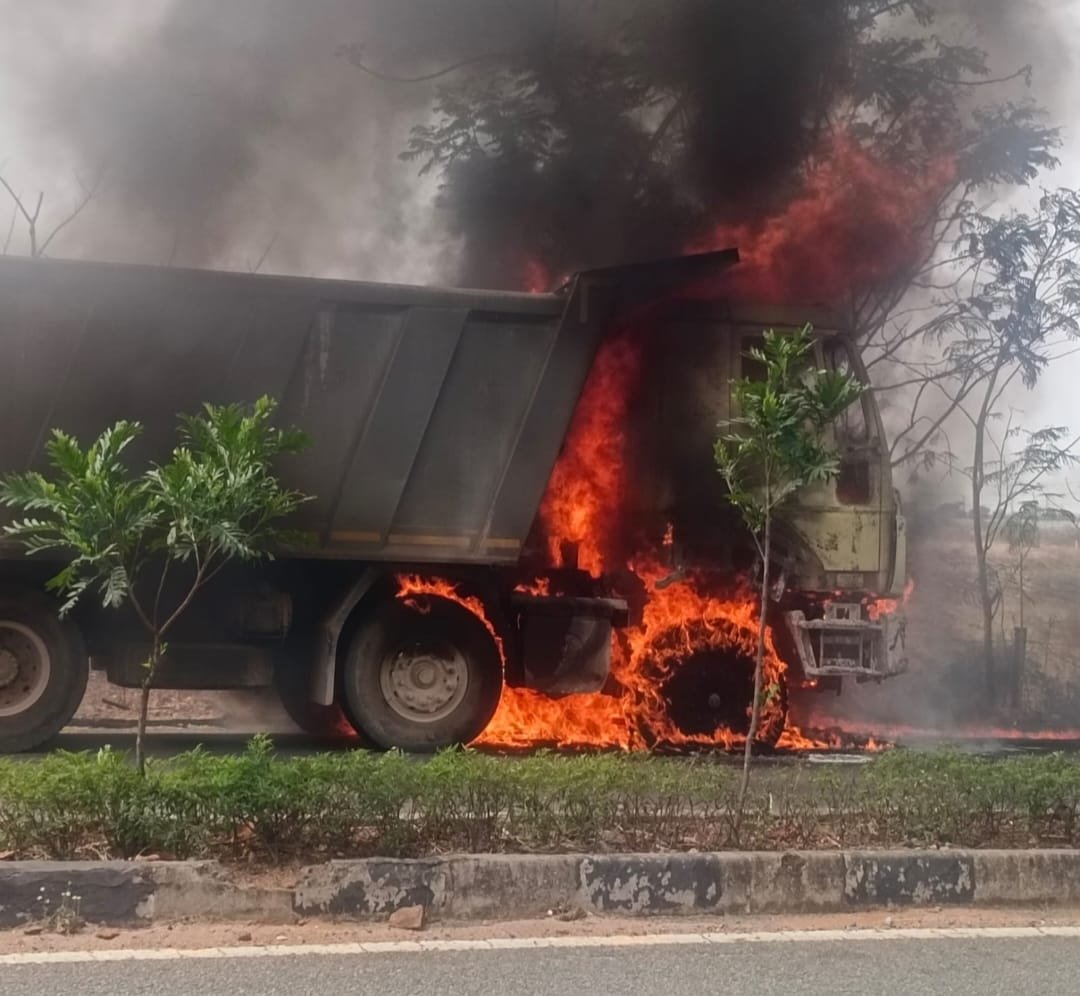 అంతారం గేట్ వద్ద టిప్పర్ లారీ అగ్నిప్రమాదం