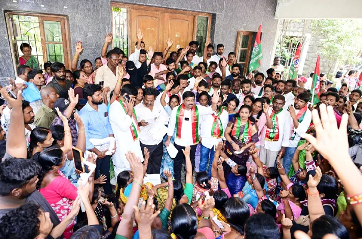 పేదలు నిర్మించుకున్న ఇళ్లకు రక్షణ కల్పి స్తూ హైకోర్టు పలుమార్లు తీర్పులు ఇచ్చిందని, 2018, 2021, 2023లో ఇచ్చిన ఉత్త ర్వుల ప్రకారం ఎవరినీ ఖాళీ చేయించవద్దని కోర్టు స్పష్టం చేసిందన్నారు. వీరు పేదవారుగా గుర్తించిన న్యాయస్థానం, ఇప్పటికే ఉన్న ఇళ్లపై యథాతథ స్థితి కొనసాగించాలని ఆదేశించిందని, అధికారులెవరూ పేదల ఇళ్ల వైపు వెళ్లేవద్దని హెచ్చరించినట్టుగా తెలిపారు. ఈ భూ కుంభకోణానికి అసలు సూ త్రధారులైన మాఫియా వ్యక్తుల పేర్లను వెం టనే బయటపెట్టి, వారిని అరెస్ట్ చేయాలని, మోసపోయిన నిరుపేదలను ఆక్రమణదారులుగా కాకుండా, బాధితులుగా, సాక్షులుగా పరిగణించాలని కోర్టు పేర్కొన్నదని వివరించారు. నకిలీ పట్టాలు అయినా మోస పోయింది నిరుపేదలు గనుక భూదాన్, గ్రామదాన్ చట్టం ప్రకారం ప్రభుత్వం, జిల్లా కలెక్టర్ చొరవ తీసుకొని ఆ 100 గజాల స్థలాలకు చట్టబద్ధంగా అసలైన భూదాన్ పట్టాలు మంజూరు చేయాలని ఆదేశాలు జారీ చేసిందని పేర్కొన్నారు. అయినా కూ డా ప్రభుత్వం ఇళ్లను కూల్చి నిరాశ్రయులను చేసిందని ఆగ్రహం వ్యక్తం చేశారు. ‘ఈ సమస్యను నేను ఇక్కడితో వదిలిపెట్టను. ఖమ్మం కలెక్టర్ నివేదిక ఆధారంగా, రాబో యే శాసనమండలి సమావేశాల్లో వెలుగుమట్ల భూ కుంభకోణంపై ప్రభుత్వాన్ని నిలదీ స్తా. దగాపడ్డ ప్రతి పేదవాడికి న్యాయం జరి గి, వారికి శాశ్వత పట్టాలు దక్కే వరకు వారి పక్షానే పోరాడుతా’ అని తీన్మార్ మల్లన్న స్పష్టం చేశారు. అనంతరం కలెక్టర్కు వినతిపత్రాన్ని ఇచ్చేందుకు వెళ్లగా ఆయన లేకపోవడంతో జాయింట్ కలెక్టర్కు వినతిపత్రాన్ని అందజేశారు. కాగా తీన్మార్ మల్లన్న రాక తెలిసి కలెక్టర్ విధులకు గైర్హాజరయ్యారని తెలిసింది. బాధితులకు తక్షణమే అదే భూమిలో పునరావాసం కల్పించాలని, ప్రతి కుటుంబానికి రూ.లక్ష సహాయం అందించాలన్నారు.