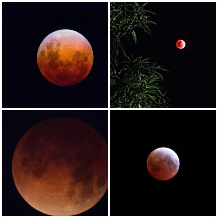 -చంద్రుడు పూర్తిగా ఎరుపు రంగులో బ్లడ్ మూన్ గా సాక్షాత్కారం