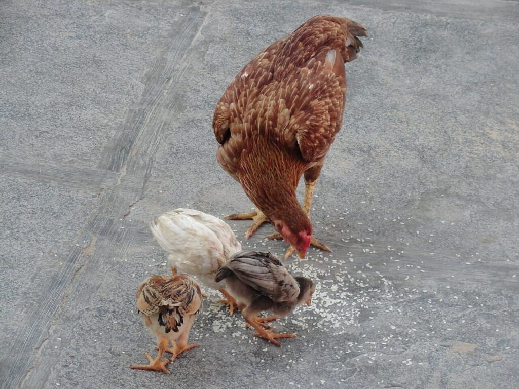 ఆరోజుల్లో ప్రతి ఇంటిలోను కోళ్లు వుండేవి. వాటిని రాత్రు లందు భద్ర పరచడానికి గూళ్లు, గంపలు వంటివి వుండేవి. ఈ ఇళ్లలో వందలాది కోళ్లు పెంచే వారు కాదు. పది, పదిహేను కోళ్లు వుంటే ఎక్కువ. ఇవన్నీ దేశవాళి కోళ్లు. అనగా నాటు కోళ్లు. వాటికి ప్రత్యేకించి మేత వేయ నవసరం లేదు.