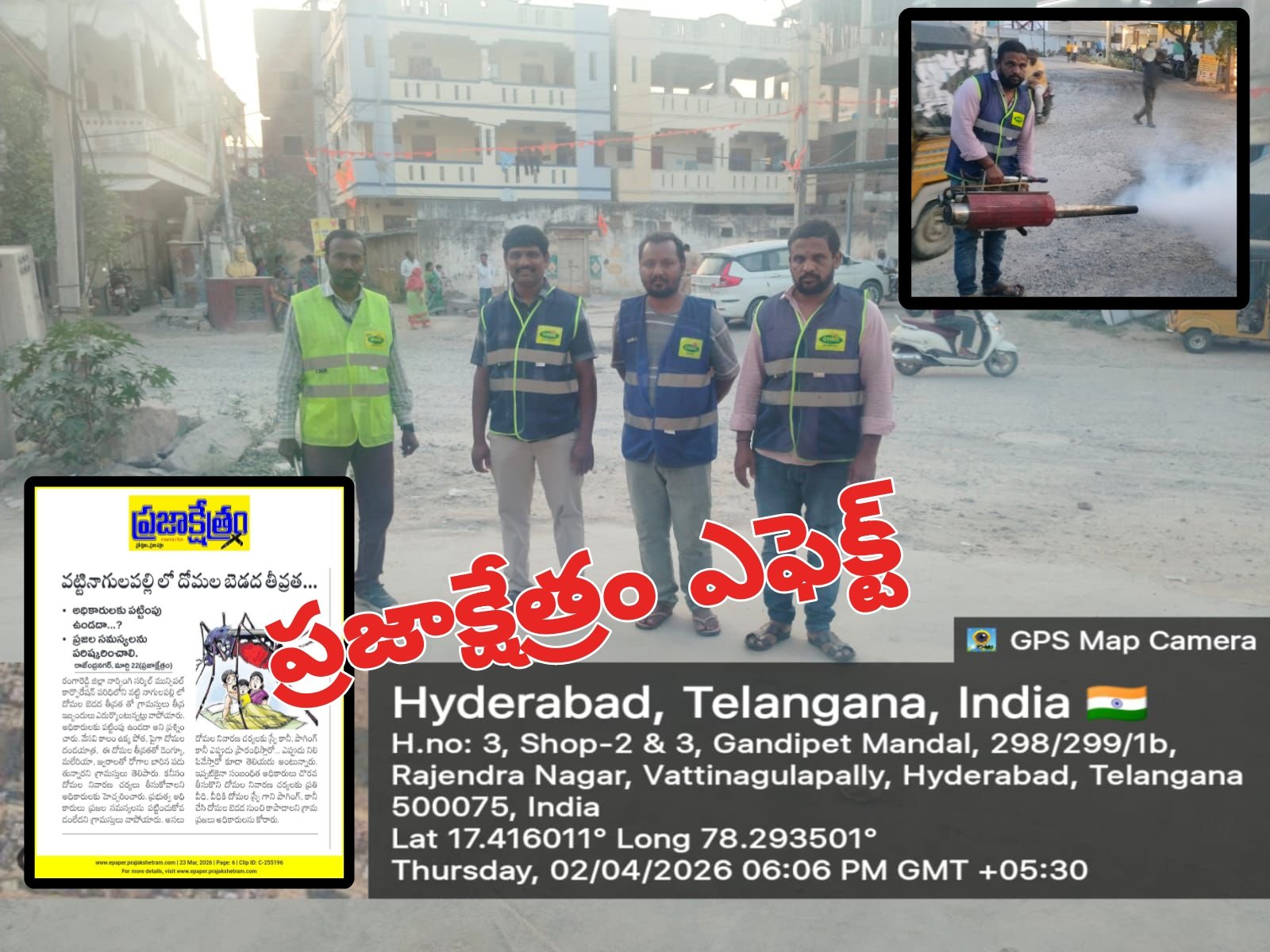 రాజేంద్రనగర్, ఏప్రిల్ 02(ప్రజాక్షేత్రం):రంగారెడ్డి జిల్లా శేరిలింగంపల్లి నార్సింగి సర్కిల్ మున్సిపల్ కార్పొరేషన్ పరిధిలోని వట్టినాగులపల్లిలో దోమల బెడద తీవ్రత అని ‘ప్రజాక్షేత్రం’ ‘పత్రికలో ప్రచురించడంతో గ్రామంలో కొంత కాలంగా దోమల బెడద ఎక్కువ ప్రజలు ఇబ్బందులు పడుతున్నారు. దోమల నివారణకు తగిన చర్యలు చేపట్టాలని గ్రామ ప్రజలు జిహెచ్ఎంసి మున్సిపల్ అధికారులకు విన్నవిస్తున్నారు. అయితే గురువారం నార్సింగి మున్సిపల్ డిప్యూటీ కమిషనర్ ఆదేశాల మేరకు అధికారులు స్పందించడంతో ఈ నేపథ్యంలో ప్రజలు సీజనల్ వ్యాధుల బారిన పడకుండా దోమల నివారణ చర్యలను చేపట్టారు. ఇందులో భాగంగా గ్రామస్తుల ఆరోగ్యాన్ని దృష్టిలో దోమల నివారణ కోసం గ్రామంలోని అన్ని వీధుల్లో, ఇందిరమ్మ కాలనీలో మున్సిపల్ సిబ్బంది దోమల నివారణ మందును ఫాగింగ్ చేశారు. దోమల నివారణ చర్యలకు స్పందించిన అధికారులను గ్రామస్తులు అభినందించారు.ఈ కార్యక్రమంలో మున్సిపల్ సిబ్బంది, తదితరులు పాల్గొన్నారు.